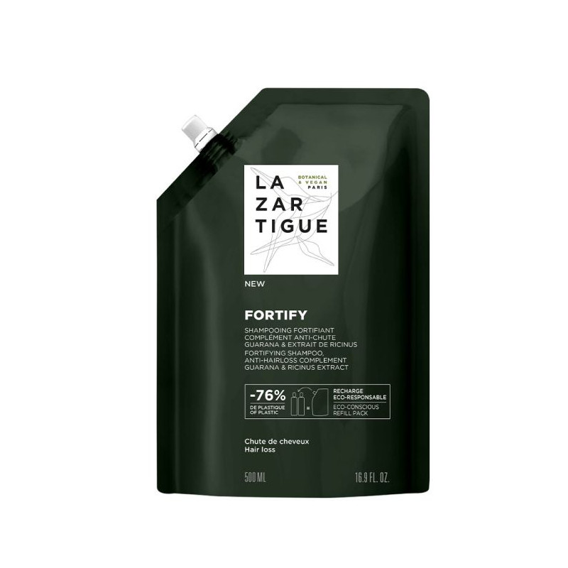 Lazartigue va encore plus loin dans ses engagements avec sa notre nouvelle écorecharge FORTIFY 500ML avec -75% de plastique.