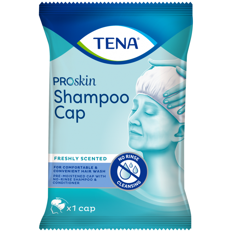 Shampoo Cap proskin TENA se présente sous la forme d'une cap.