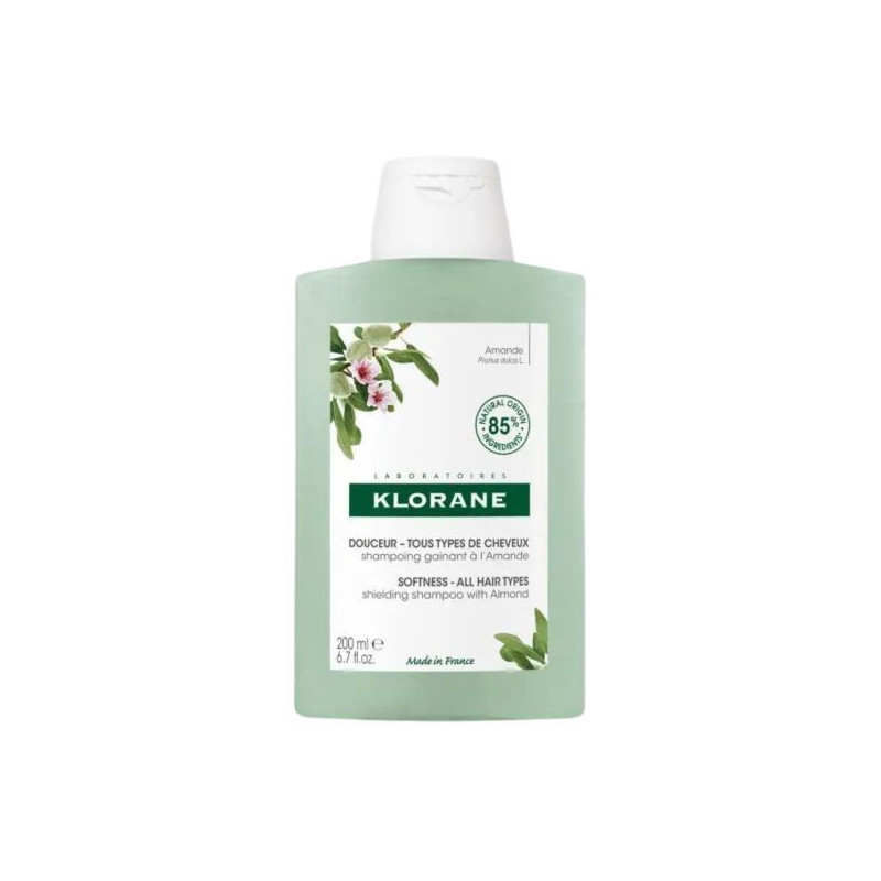 Klorane Douceur - Tous Types de Cheveux Shampoing Gainant à l'Amande 200 ml est un shampoing à l'amande (Prunus dulcis L.), reconnue pour ses vertus nutritives sur la fibre capillaire. La pression à froid de ses graines mûres extrait une huile vierge riche en acides oléique et linoléique. Les cheveux sont souples, brillants et faciles à coiffer. Sans tensio-actifs sulfatés. Flacon recyclé et recyclable. 85% des ingrédients sont d'origine naturelle. Vegan.