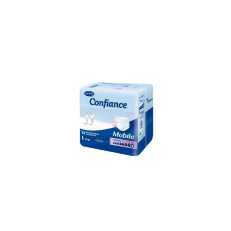 Sous-vêtement absorbant avec triple coussin absorbant "Dry Plus" assurant une diffusion très rapide de l’urine pour un effet garde au sec immédiat et une neutralisation des odeurs. Les barrières anti-fuites hydrophobes et intégrales assurent une sécurité maximale. Le voile externe en nontissé ultra doux et souple au toucher textile est imperméable et micro respirant. La ceinture élastiquée assure un maintien parfait pour plus de confort. Confiance Mobile se met et s’enlève comme un sous-vêtement classique ou peut être retiré en déchirant les coutures latérales de la ceinture. L’indicateur d’humidité indique le degré de saturation du produit. Protection active de la peau Le triple coussin absorbant exclusif Hartmann comporte un coussin diffuseur au pH 5,5, neutre à la peau, qui rééquilibre le pH physiologique de la peau. Ainsi, il protège la peau de l'agression de l'urine, préserve son film hydrolipidique et évite la prolifération bactérienne spécifiquement dans la zone de miction car elle est en contact direct avec l'urine. Testé sous contrôle dermatologique.