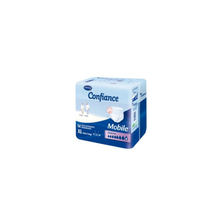 Sous-vêtement absorbant avec triple coussin absorbant "Dry Plus" assurant une diffusion très rapide de l’urine pour un effet garde au sec immédiat et une neutralisation des odeurs. Les barrières anti-fuites hydrophobes et intégrales assurent une sécurité maximale. Le voile externe en nontissé ultra doux et souple au toucher textile est imperméable et micro respirant. La ceinture élastiquée assure un maintien parfait pour plus de confort. Confiance Mobile se met et s’enlève comme un sous-vêtement classique ou peut être retiré en déchirant les coutures latérales de la ceinture. L’indicateur d’humidité indique le degré de saturation du produit. Protection active de la peau Le triple coussin absorbant exclusif Hartmann comporte un coussin diffuseur au pH 5,5, neutre à la peau, qui rééquilibre le pH physiologique de la peau. Ainsi, il protège la peau de l'agression de l'urine, préserve son film hydrolipidique et évite la prolifération bactérienne spécifiquement dans la zone de miction car elle est en contact direct avec l'urine. Testé sous contrôle dermatologique.