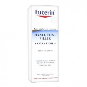 Eucerin Hyaluron-Filler Extra Riche Soin de Jour 50 ml est un soin quotidien visage spécialement formulé pour les peaux sèches à très sèches.