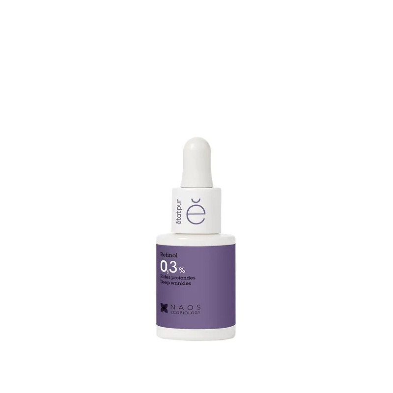 L'Actif Pur Rétinol 0,3% d'Etat Pur est un actif anti-âge puissant. Efficace pour lisser les rides profondes et raffermir la peau, il vient booster la production de Collagène et d'Elastine. La peau est plus souple et semble visiblement plus jeune. Le Rétinol a également une action régénérante. Il accélère le renouvellement cellulaire et débarrasse la peau des cellules mortes. Son action anti-âge lisse les rides et ridules pour une peau visiblement plus jeune. Cet Actif Pur rend aussi la peau plus uniforme et le teint plus lumineux en régulant la synthèse de mélanine à l’origine des taches brunes. Actif concentré à la dose optimale d'efficacité et d'innocuité pour votre peau. Ultra-ciblé, il agit exactement là où c'est nécessaire.