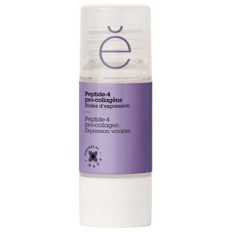 Etat Pur Peptide-4 Pro-Collagène 15 ml est un soin indiqué pour cibler les rides d'expression (ride du lion, pattes d'oie, contour de la bouche). Le peptide-4 pro-collagène est un peptide naturellement présent dans la peau qui stimule la synthèse de collagène et autres composants du derme, essentiels à la densité et la fermeté de la peau.