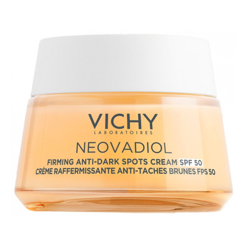 Vichy Neovadiol Post-Ménopause Crème Redensifiante Anti-Taches Brunes SPF50 50 ml est une crème de jour légère possédant une triple efficacité anti-âge : correction des rides, prévention des taches brunes et des taches de vieillesse, amélioration de l'élasticité.