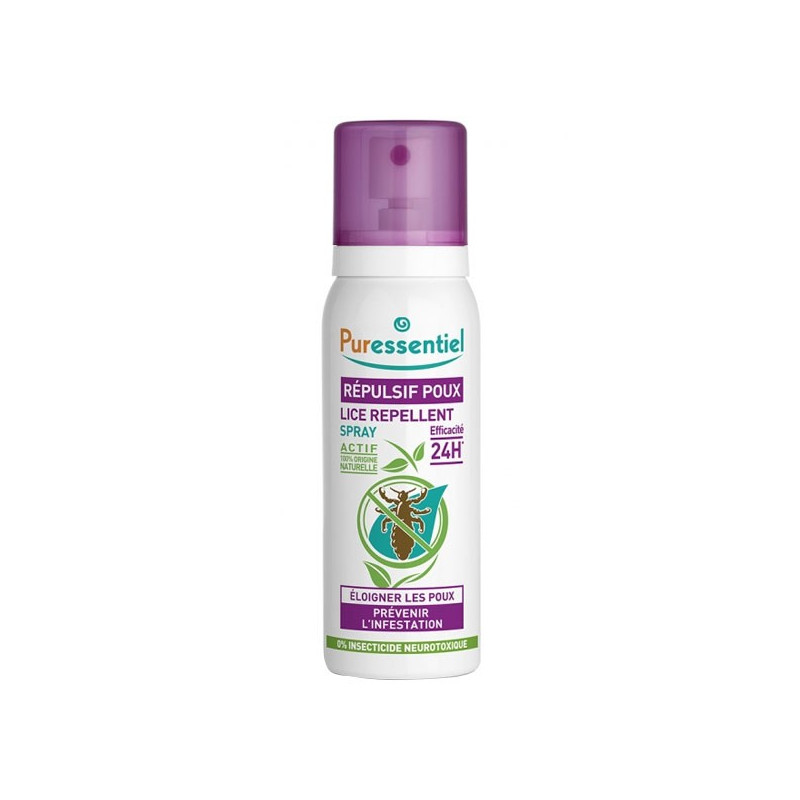 Puressentiel Spray Répulsif Poux 75 ml a une action préventive naturelle contre les poux. En cas d'épidémie, il prévient l'infestation du cuir chevelu.