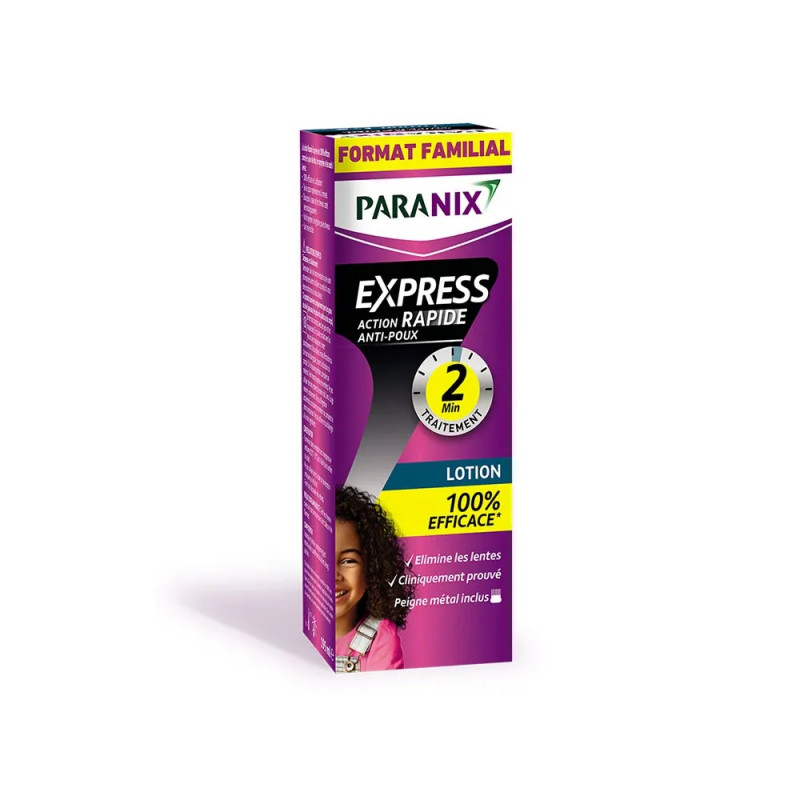 La Lotion Express Anti-Poux Paranix aide à éliminer les poux et les lentes en deux minutes.