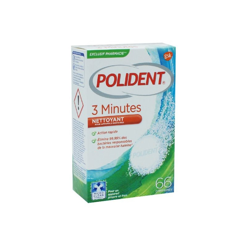 Polident 3 Minutes Nettoyant 66 Comprimés aide à nettoyer votre appareil dentaire de meilleure façon qu'un dentifrice usuel.