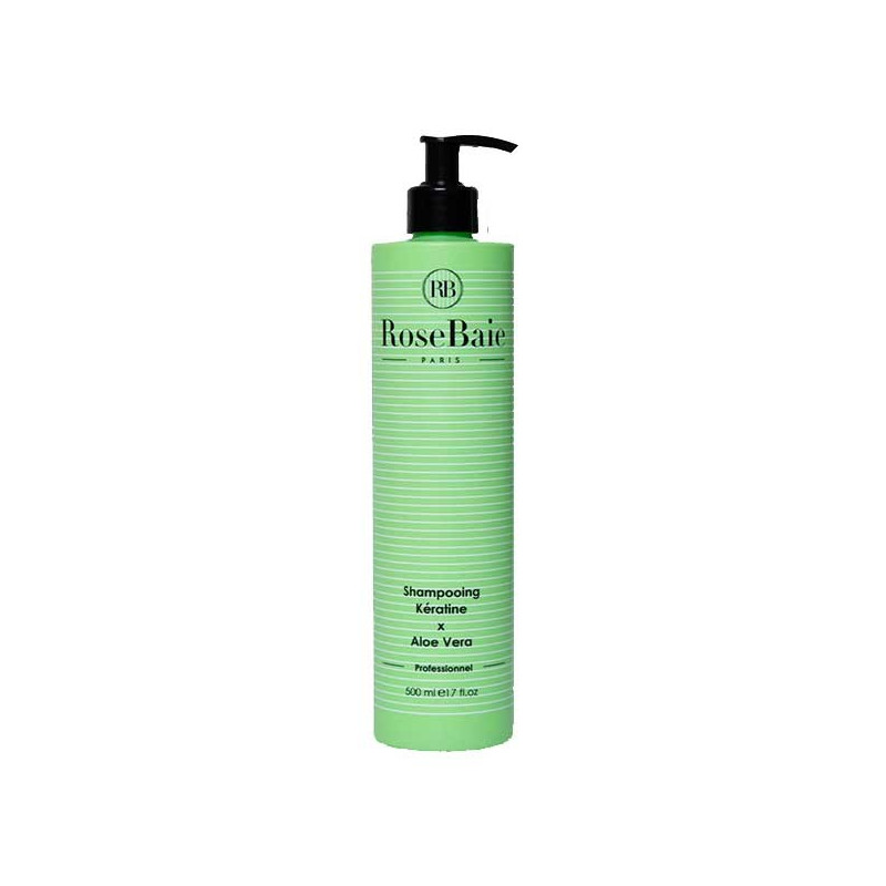Le shampoing RoseBaie à la kératine et à l’Aloe vera élimine les impuretés, équilibre le Ph des cheveux, hydrate et discipline afin de retrouver un éclat naturel pour les cheveux secs comme les cheveux gras.