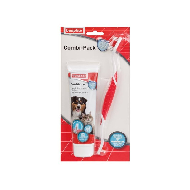 Beaphar Combi-Pack Dentifrice et Brosse Chiens Chats prévient des problèmes bucco-dentaires, élimine la plaque dentaire et assure une haleine fraîche