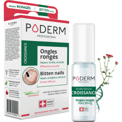 L’huile-sérum CROISSANCE – ONGLE RONGÉ PODERM® améliore l’apparence des ongles rongés. Il forme un film lipidique protecteur qui renouvelle l’ongle et active la croissance. Recommandé par les podologues & dermatologues, convient aux adultes, aux enfants de plus de 3 ans, aux femmes enceintes et aux personnes diabétiques.