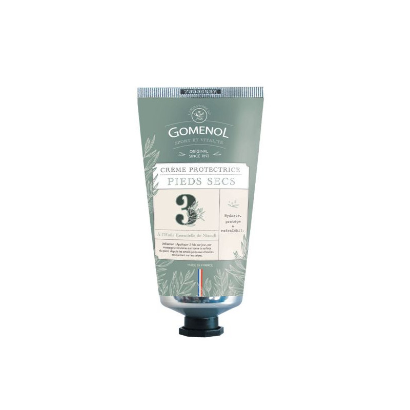 La Crème Protectrice Pieds Secs goménol est à base de 6 huiles essentielles (dont l’huile de Niaouli) ,1 complexe Bioactif protecteur de l’écosystème cutané et du Beurre de Karité qui hydrate, protège et rafraichit. La synergie de ces huiles essentielles et du complexe bioactif protecteur de l’écosystème cutané apporte :