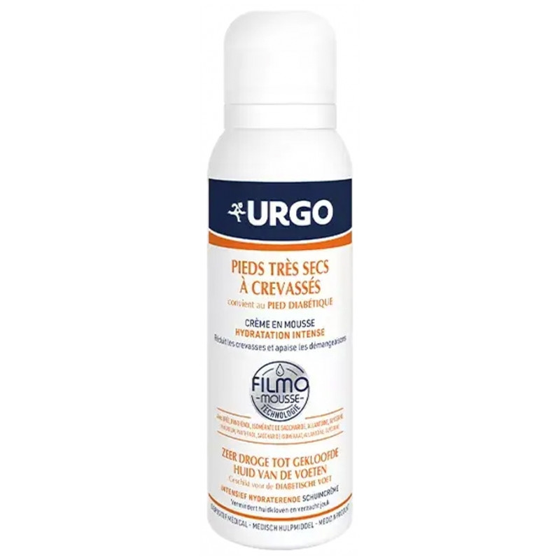 Urgo Crème en Mousse Hydratation Intense 125 ml est une crème mousse dédiée au soin des pieds très secs et crevassés, y compris pour les pieds diabétiques.