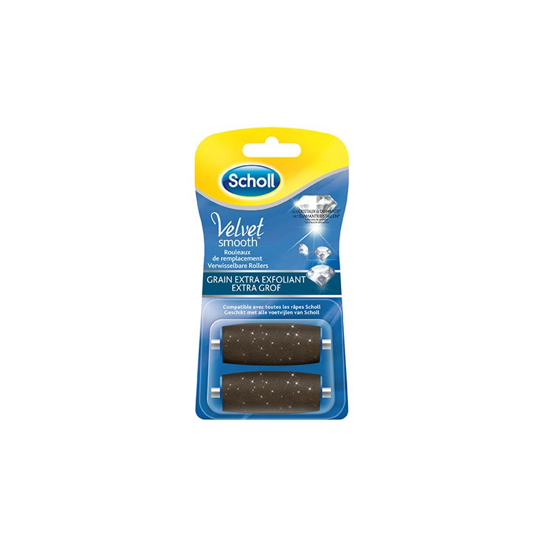 Scholl Velvet Smooth Grains Extra Exfoliant 2 Rouleaux de Remplacement éliminent efficacement les callosités dures pour de pieds doux en un clin d'œil.
