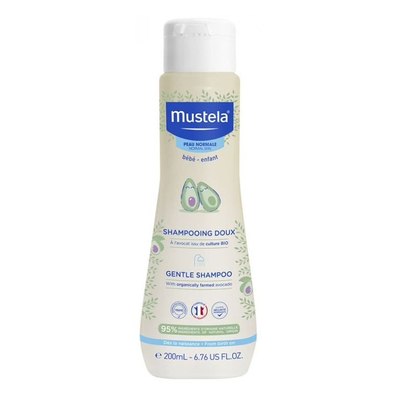 Mustela Shampoing Doux 200 ml est un shampoing doux à l'avocat issu de culture Bio qui lave et démêle efficacement les cheveux délicats de bébé dès la naissance. La formule de ce shampoing doux contient du perséose d'avocat, un actif naturel breveté qui renforce la barrière cutanée et protège le capital cellulaire de la peau vulnérable de votre bébé.