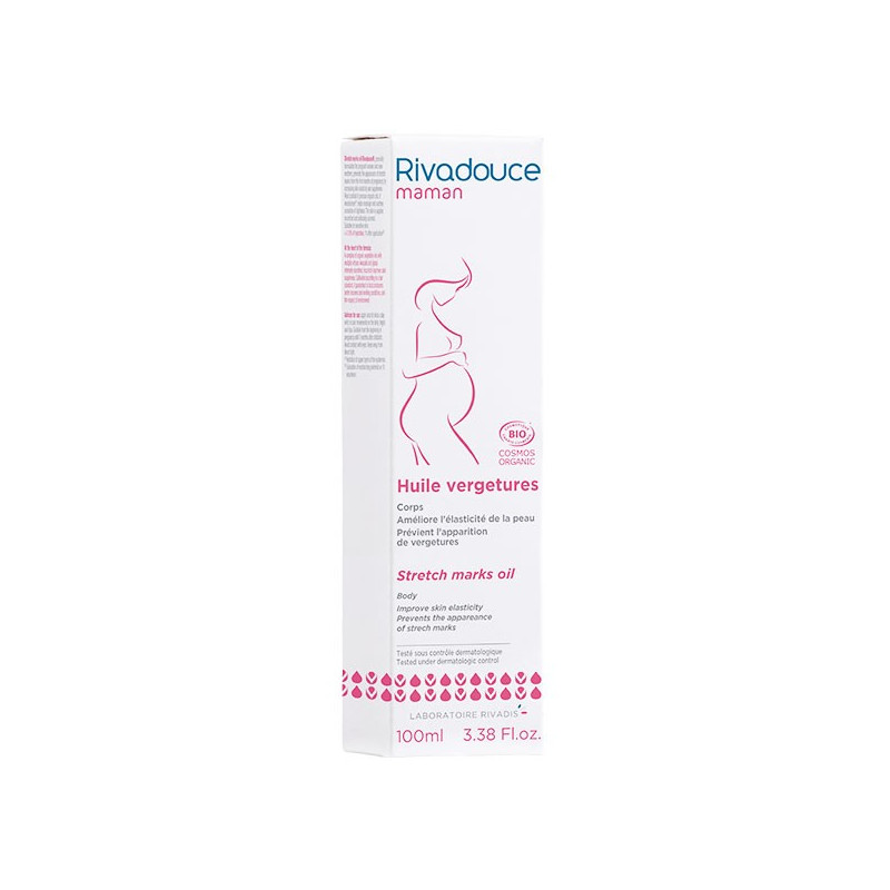 NOUVEAUTÉ BIO - L’huile vergetures Rivadouce certifiée bio, spécialement formulée pour les futures et jeunes mamans, prévient l’apparition des vergetures dès les premiers mois de grossesse en renforçant l’élasticité et la souplesse de la peau.