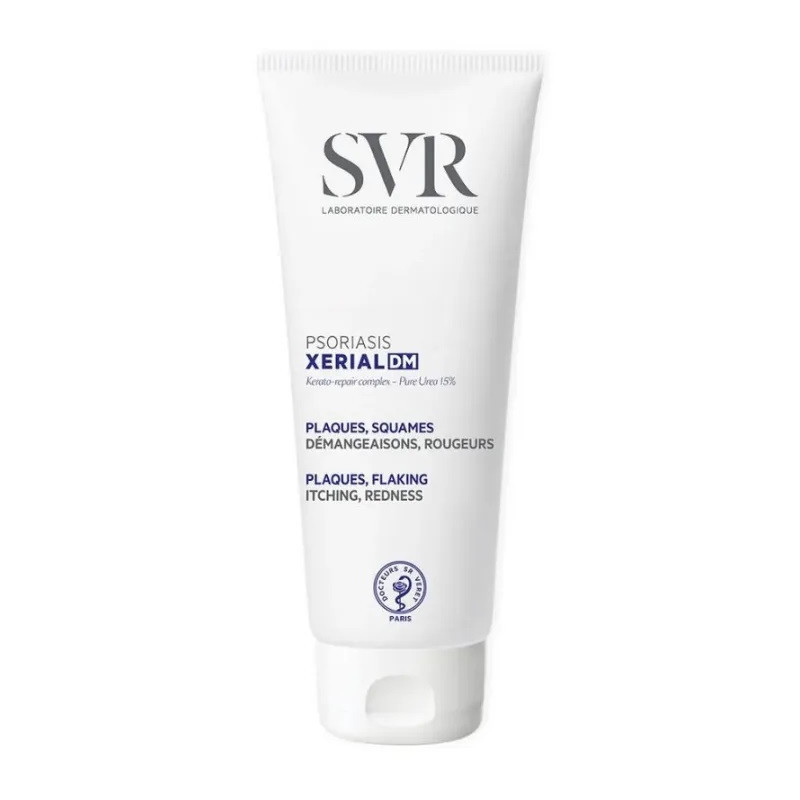 Psoriasis Xérial DM des Laboratoires SVR, dispositif médical indiqué pour le traitement des symptômes du psoriasis : plaques, squames, démangeaisons, rougeurs.