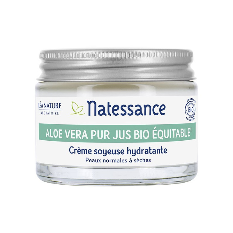 Natessance Aloe Vera Crème Soyeuse Hydratante Bio 50ml gorge la peau en eau.