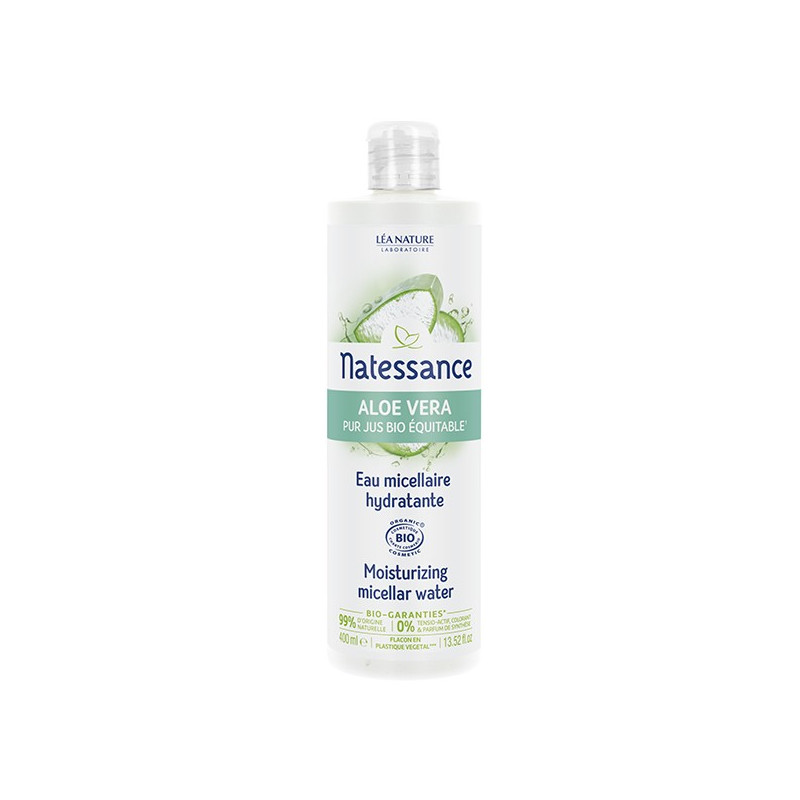 Natessance Aloe Vera Eau Micellaire Hydratante Bio 400ml nettoie et démaquille la peau en douceur.