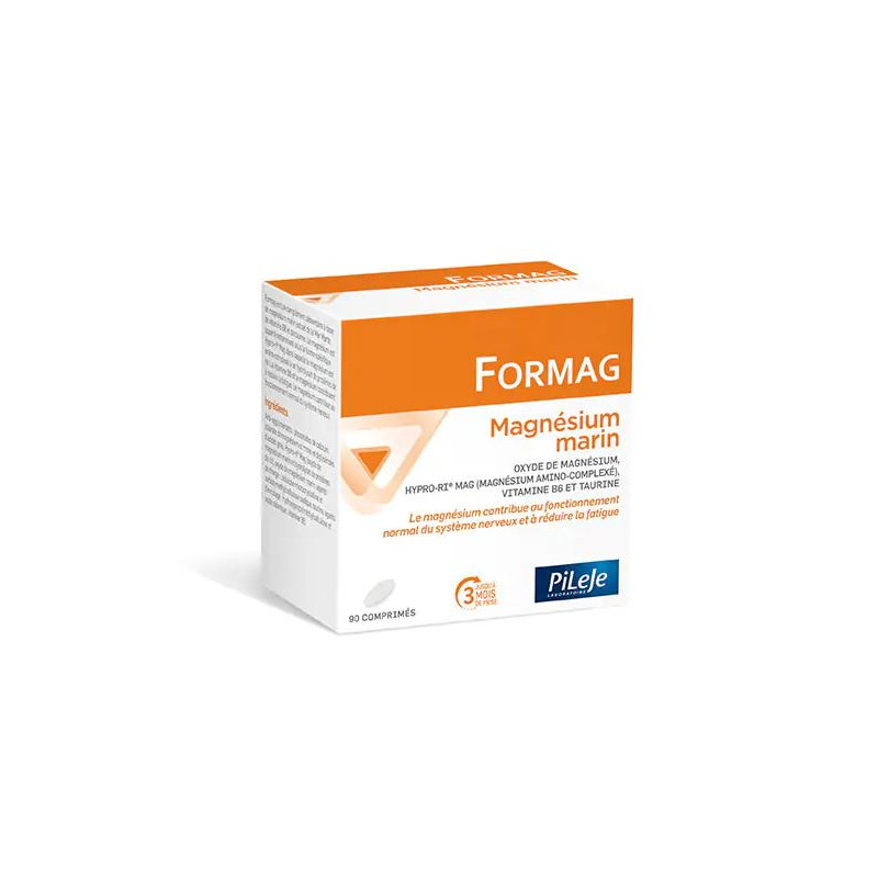Pileje Formag 90 comprimés de 898 mg est préconisé en cas de déficit prolongé en magnésium (manque de tonus, sommeil perturbé, sensibilité au stress…).