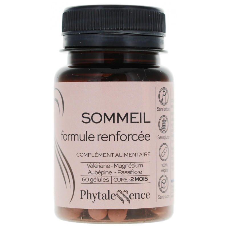 Phytalessence Sommeil 60 Gélules est un complément alimentaire à base de valériane, magnésium, aubépine et passiflore.