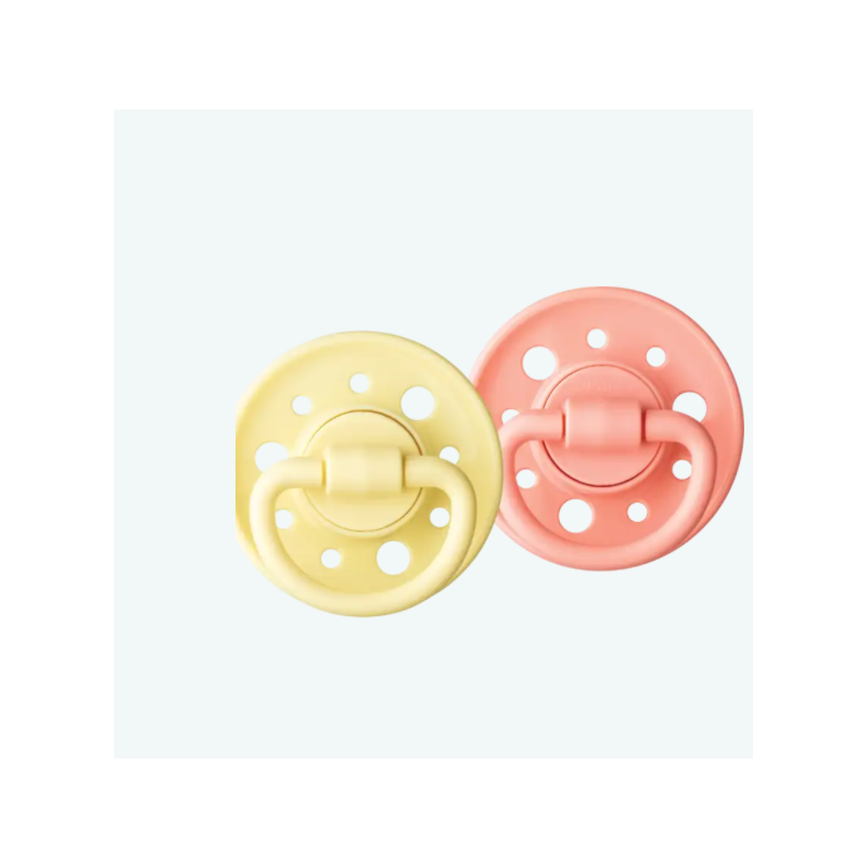 Lot de 2 sucettes rondes Gaïa en caoutchouc naturel pour les bébés de 6 à 36 mois, Rose/Jaune
