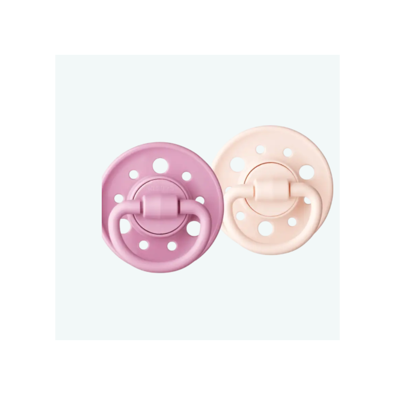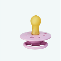 Lot de 2 sucettes rondes Gaïa en caoutchouc naturel pour les bébés de 0-6 mois Rose et Violet pastel