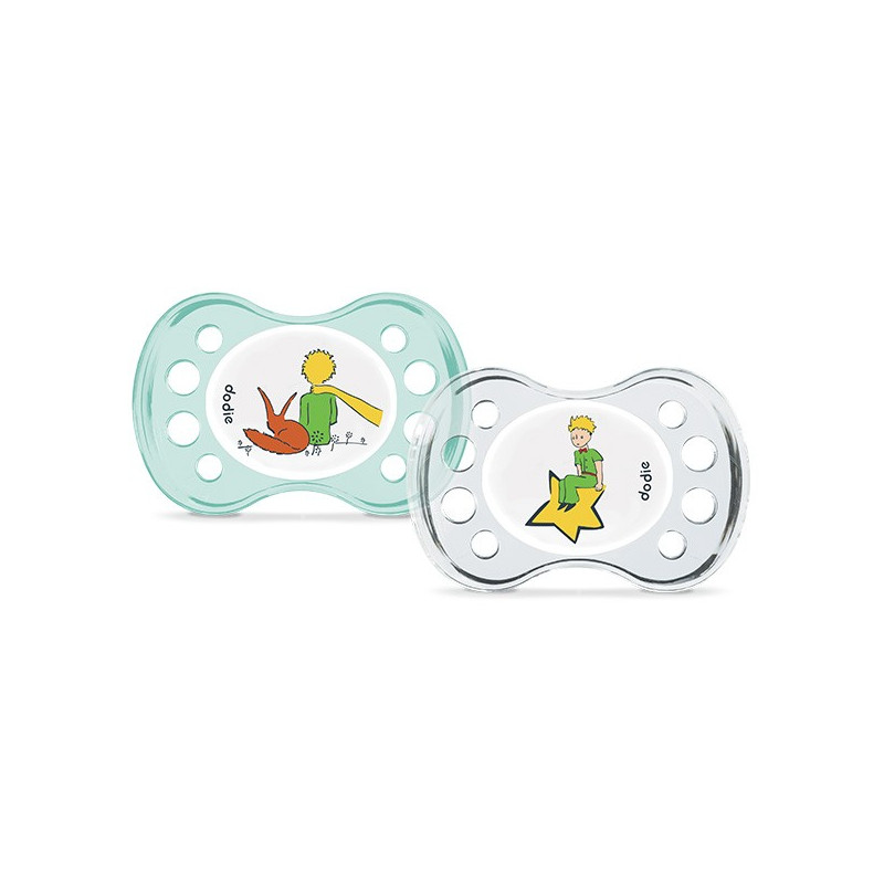Dodie Sucette Anatomique +0m Le Petit Prince Renard Lot de 2 est un lot de 2 sucettes anatomiques pour les bébés de 0 à 6 mois.
