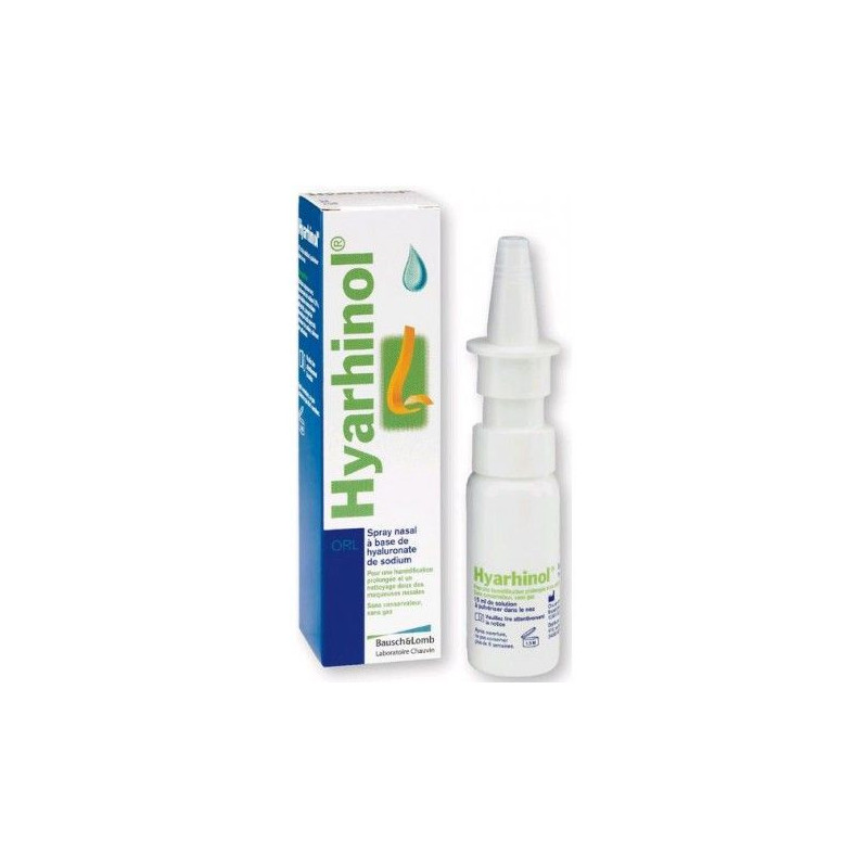 Le spray nasal Hyarhinol des laboratoires Chauvin (Bausch+Lomb) est une solution pour pulvérisation nasale. Il est utilisé pour apporter une humidification prolongée aux muqueuses nasales asséchées par des atmosphères chauffées ou climatisées, ainsi que pour favoriser le processus de nettoyage des fosses nasales, en cas de surexposition aux pollens, aux poussières ou aux fumées. Il peut également être utilisé en mesure complémentaire pour le traitement du rhume.
