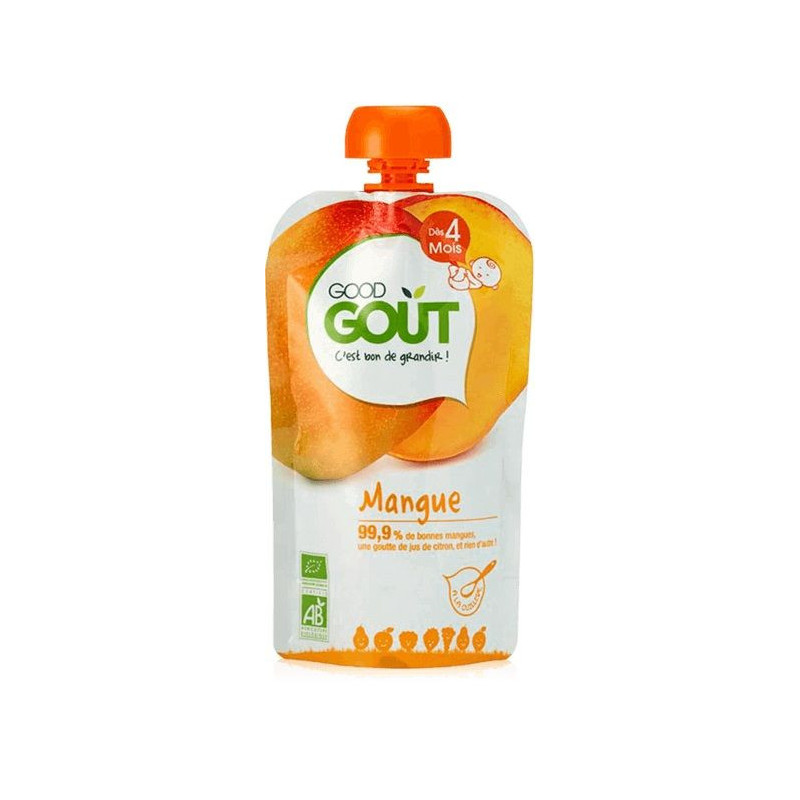 Pourquoi cette Good Gourde est-elle si bonne ? Parce que dans cette gourde, il y a 99,9% de mangues bio. Et... une goutte de jus de citron bio. Un peu comme si vous les aviez cultivées et cuisinées avec amour. Sauf qu'on l'a déjà fait pour vous. Parce que notre mangue est bio. Ce qui veut dire qu'aucun de nos fruits n'a été maltraité par des OGM, pesticides ou autres engrais chimiques pendant sa culture. Aussi saine que délicieuse, pour le dire simplement. Parce que la Good Gourde pour bébés est aussi jolie que maline. Légère et pratique, elle est facile à utiliser, refermer, emporter : de quoi régaler votre enfant partout, tout le temps. La petite histoire de la mangue Originaire d'Inde et de Birmanie, le manguier est cultivé depuis plus de 4000 ans ! La mangue est aujourd'hui le fruit tropical le plus consommé au monde après la banane. Colorée, sucrée, fondante, au goût de pêche et de fleur, parfois légèrement poivrée, elle régale les petits.Packaging :
