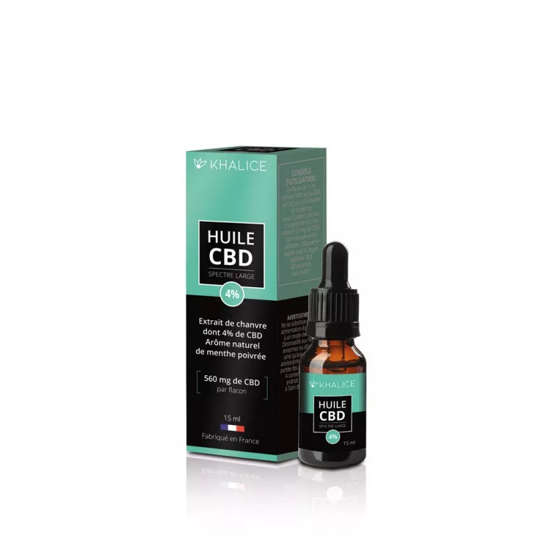 KHALICE Huile de CBD 4% est une huile d’origine végétale à base d’extrait de chanvre à large spectre.