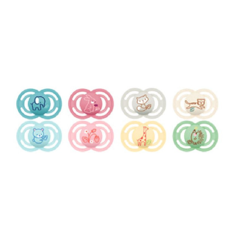 MAM 2 Sucettes Perfect Animaux 6 Mois et + sont des sucettes anatomiques conçues pour réduire le risque de mauvais alignement des dents et permettre le bon développement bucco-dentaire. La tétine est extra-fine pour que bébé puisse fermer sa bouche plus naturellement. Elle est en silicone SkinSoft™, facilement accepté par les bébés.