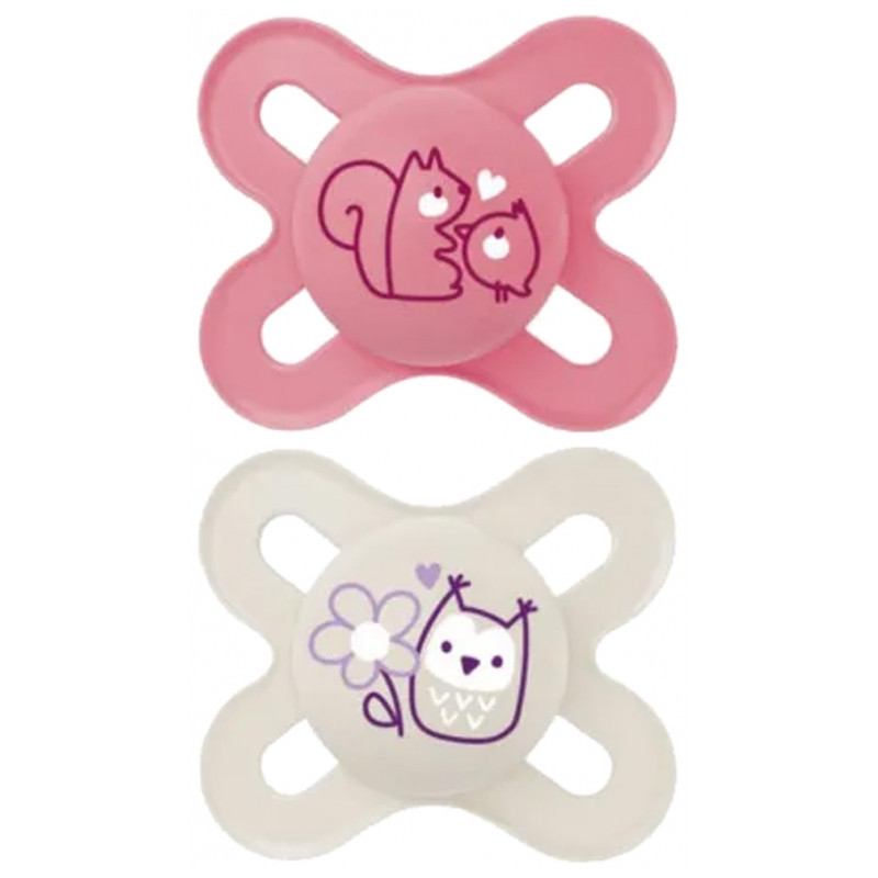 MAM 2 Sucettes Original Naissance 0-2 Mois sont des sucettes anatomiques et symétriques qui respectent la forme de la bouche. Elles se composent :