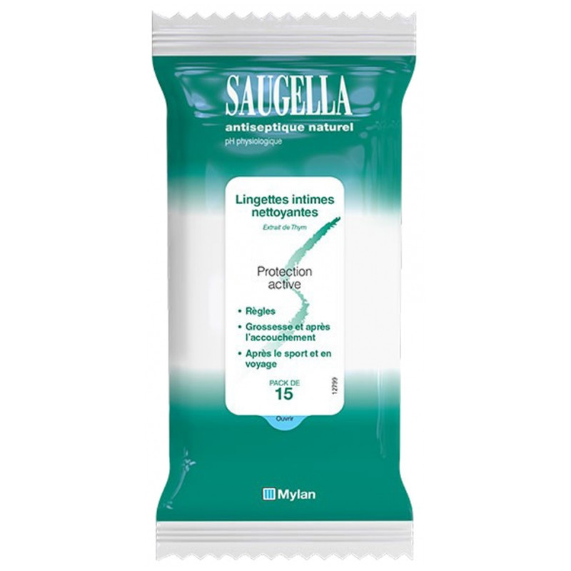 Saugella Antiseptique Naturel 15 Lingettes Intimes sont des lingettes en tissu doux et résistant imbibées d'une solution nettoyante au pH physiologique, avec un extrait de Thymus vulgaris (thym). Spécifiques pour l'hygiène intime féminine, elles apportent une sensation rafraîchissante et sont idéales en cas de voyage.