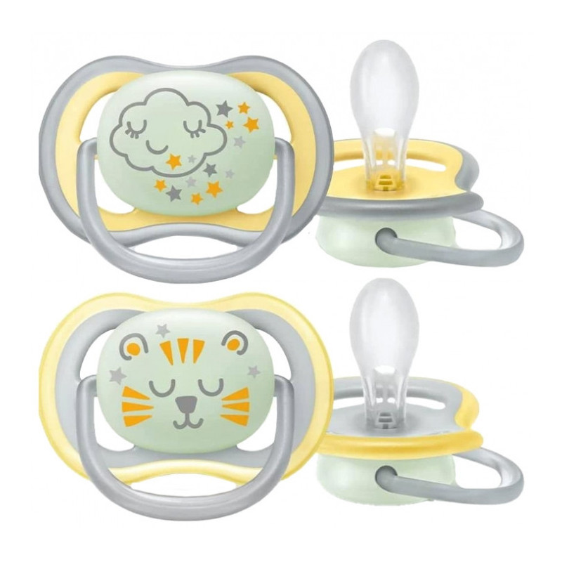 Lot de 2 Sucettes Orthodontiques Ultra Air Night Avent pour les bébés à partir de 18 mois.