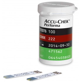 100 bandelettes réactives pour le lecteur de glycémie Accu-Chek Performa.