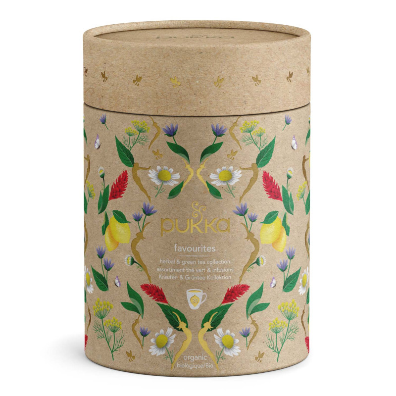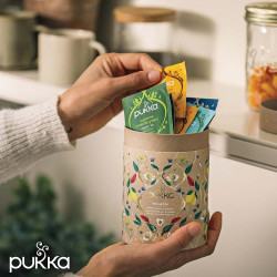 Pukka Favourites est un assortiment de thé vert et infusions sélectionnés parmi les plus appréciés de la marque. Présentée dans une belle boîte au décor coloré, cette sélection de thés et infusions permet de découvrir Pukka à travers 5 références à déguster du matin au soir.
