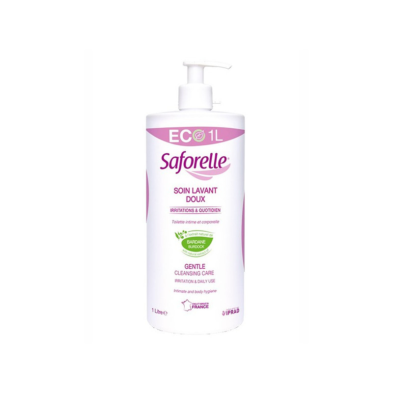 Saforelle Soin Lavant Doux 1 Litre nettoie en douceur et calme les irritations et les démangeaisons.