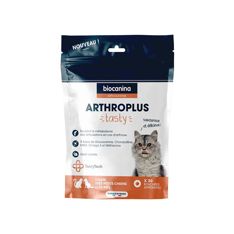 Biocanina Arthroplus Tasty Chat 30 bouchées est un aliment complémentaire diététique, destiné au soutien du métabolisme des articulations en cas d’arthrose.