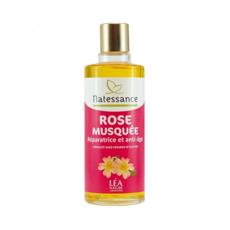 Natessance Rose Musquée Réparatrice Et Anti-Âge 100 ml est une huile réparatrice formulée avec de l'huile de rose musquée, de l'huile d'amande douce et du parfum.