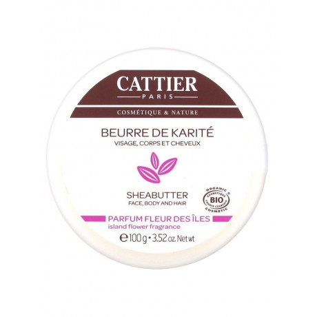Cattier Beurre de Karité Parfum Fleur des Îles 100 g naturellement riche en vitamines A, D, E, F nourrit intensément l'épiderme et favorise le renouvellement cellulaire. Il