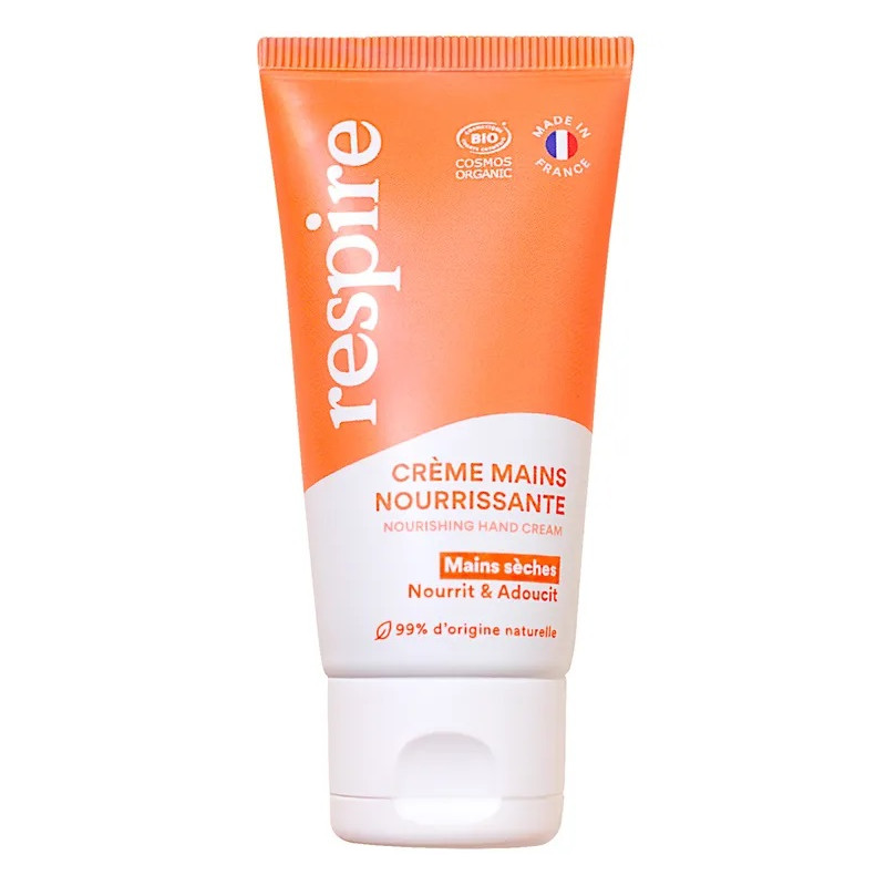 La crème mains nourrissante Respire est à 99% d’origine naturelle, certifiée bio, vegan et faite en France.