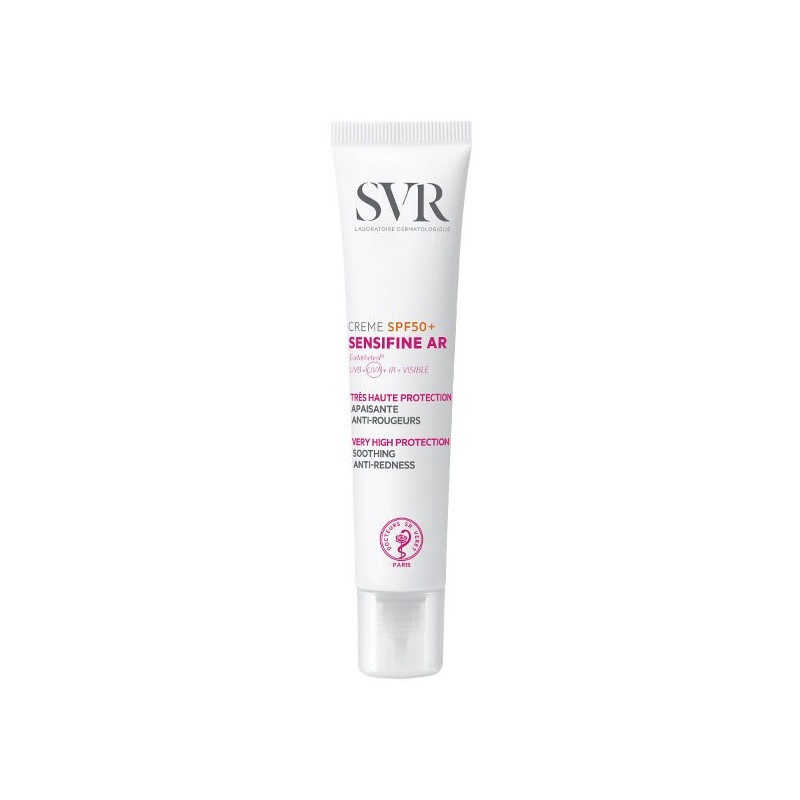 SVR Sensifine AR Crème Apaisante Anti-rougeurs SPF50+ 40ml associe une très haute protection à des actifs apaisants et anti-rougeurs. Même exposées, vos rougeurs sont atténuées, vos sensations d’échauffement réduites.
