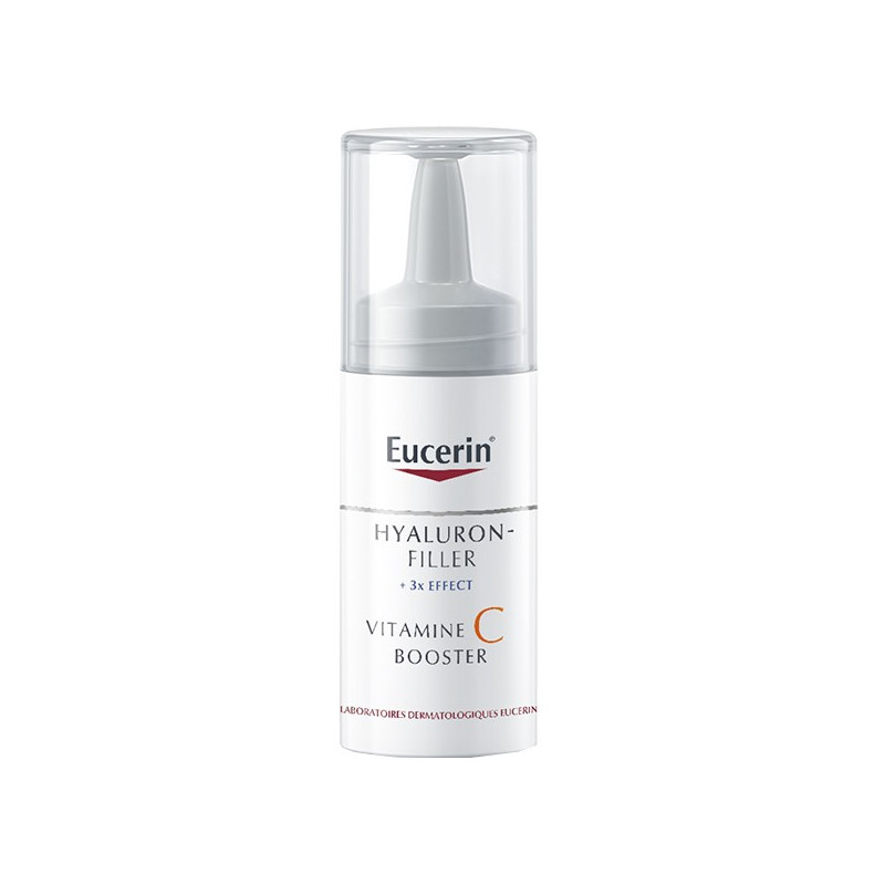 Eucerin Hyaluron-Filler +3x Effect Sérum Vitamine C Booster 8ml contient 10 % de vitamine C pure et fraîchement activée. Sa formule triple effet :