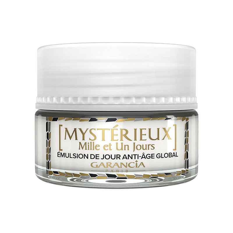 L'Émulsion de Jour Anti-Âge Mystérieux Mille et Un Jours du laboratoire Garancia est un soin anti-âge global aidant à redensifier, raffermir et lifter visiblement la peau tout en diminuant l’apparence de tous les types de rides (âge, déshydratation, expression).