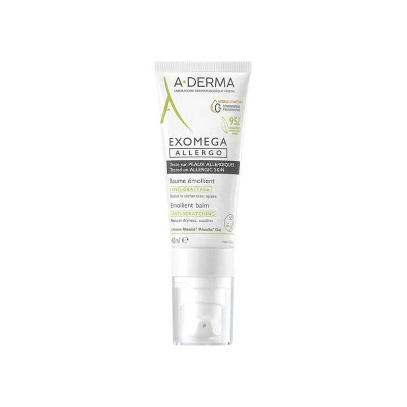 A-Derma Exomega Allergo Baume Emollient Anti-Grattage 40ml apaise sécheresse, rougeurs, irritations et réduit de 95% les démangeaisons des peaux sèches à tendance à l’eczéma atopique.