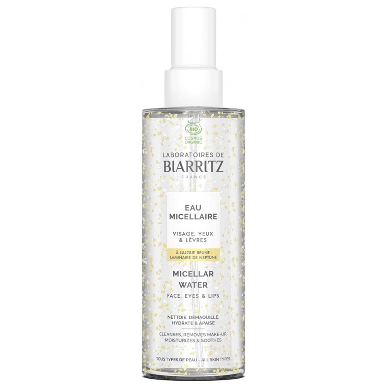Laboratoires de Biarritz Eau Micellaire Bio 200 ml est une eau qui nettoie, démaquille, hydrate et apaise les visages, yeux et lèvres de tous les types de peaux.